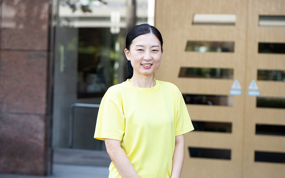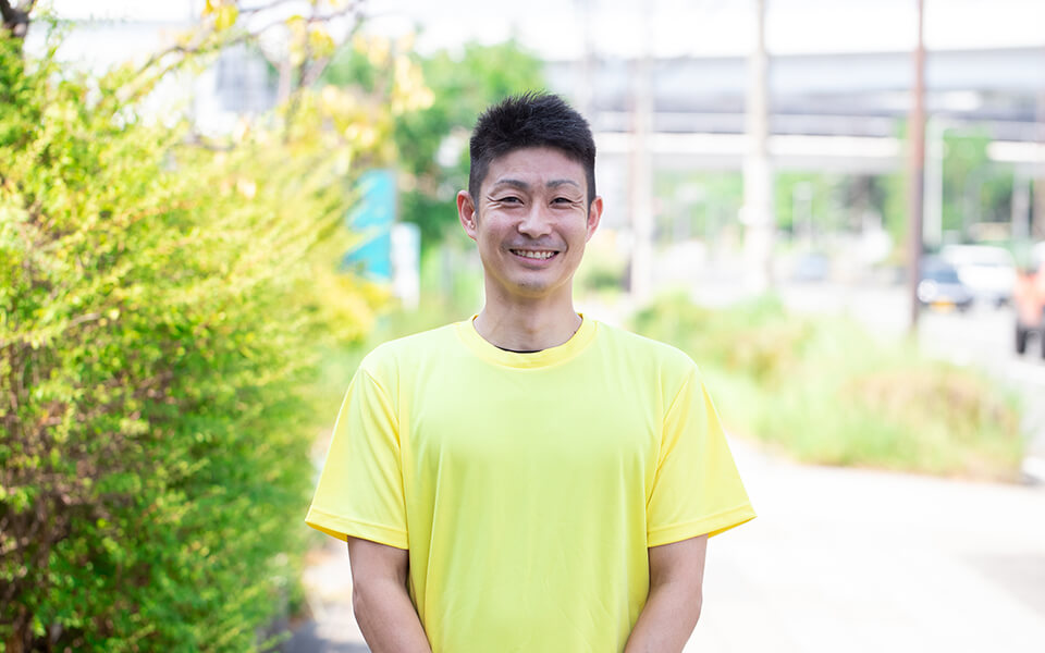 前職でもリハビリ職を経験し、遺徳会では機能訓練指導員として活躍中。歩行訓練や筋力維持の運動を通じて利用者の生活を支えている。声かけによって気持ちを和らげ、前向きな気持ちを引き出すことを大切にしている。4人の子どもの父親として子育てにも奮闘しており、その話題が利用者との会話にも生かされている。
